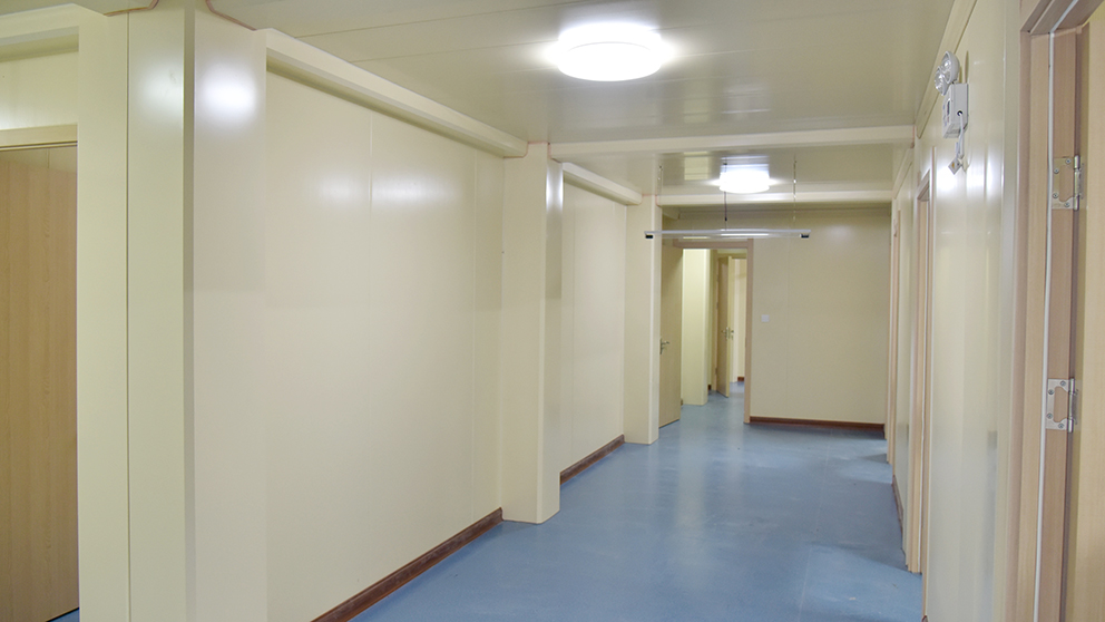 圍護(hù)系統(tǒng)采用保溫防火裝飾一體化的綠色建材,在冬季墻體不僅保溫效果好,內(nèi)部空間也具有防塵、防靜電、抗菌等功能。住宿、辦公、環(huán)境衛(wèi)生基礎(chǔ)配置優(yōu)越,最大可能滿足隔離人員及醫(yī)護(hù)人員的實(shí)際需求。