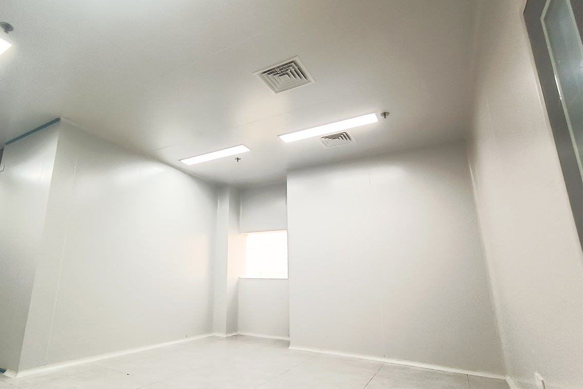 以平為凈,詮釋凈美底色。凈化板面板為純平板面,平整度高、光潔美觀,不易沾灰。潔凈室墻壁、吊頂、照明、門窗及風(fēng)口處的致密無(wú)孔細(xì)節(jié)密封設(shè)計(jì),嚴(yán)防灰塵與水汽進(jìn)入。